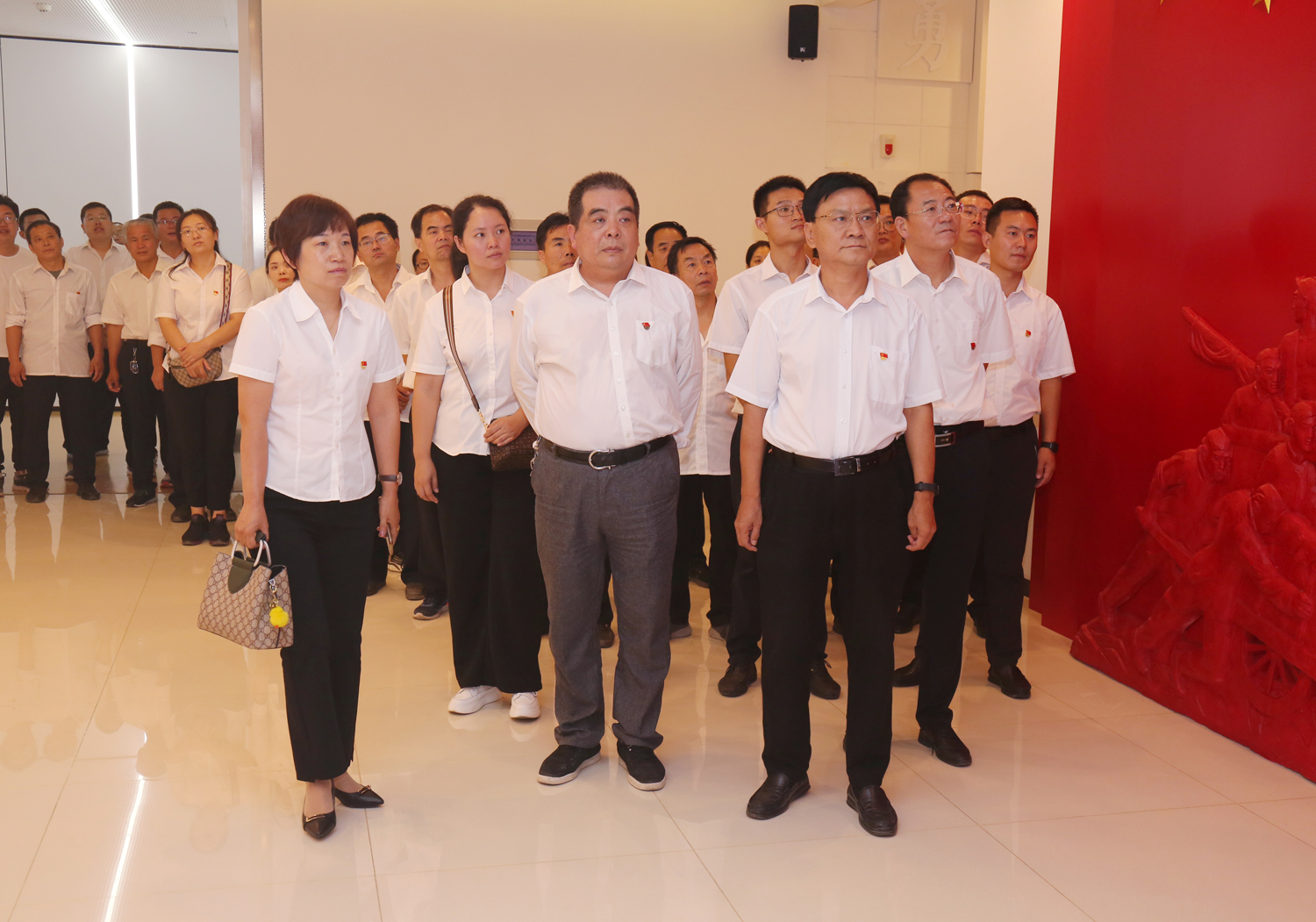 參觀結束后,全體黨員干部來到尾廳,面對鮮紅的黨旗莊嚴宣誓,用飽滿的熱情重溫了入黨初心。