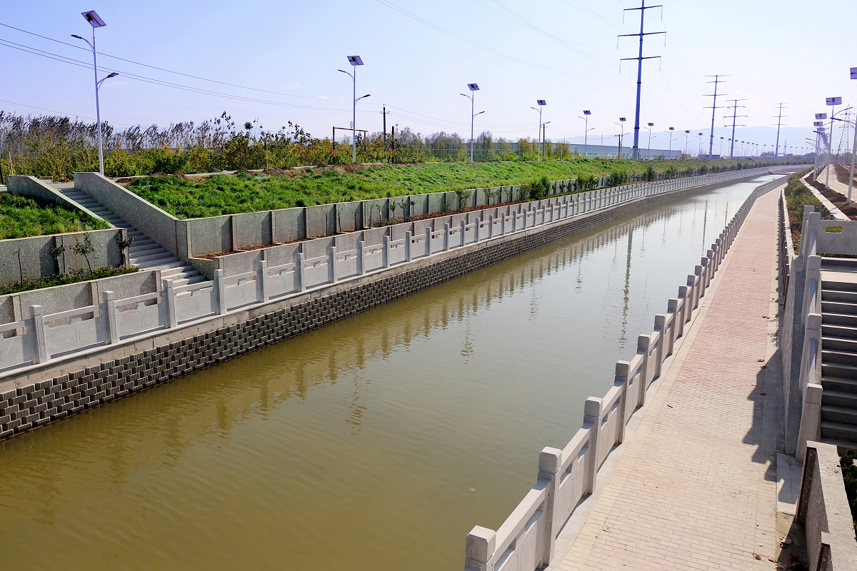 該項(xiàng)目全長(zhǎng)4.4公里,總投資1.34億元,主要建設(shè)內(nèi)容:渠道整修改造4.4km,新建和改造原污水管道4.3km,渠岸景觀綠化7.4萬㎡,橋梁拆建7座,擋水堰6座,同時(shí)增加了護(hù)欄、人行步道和照明設(shè)施。該項(xiàng)目于2017年10月份開工建設(shè),2020年竣工驗(yàn)收進(jìn)入運(yùn)營階段。