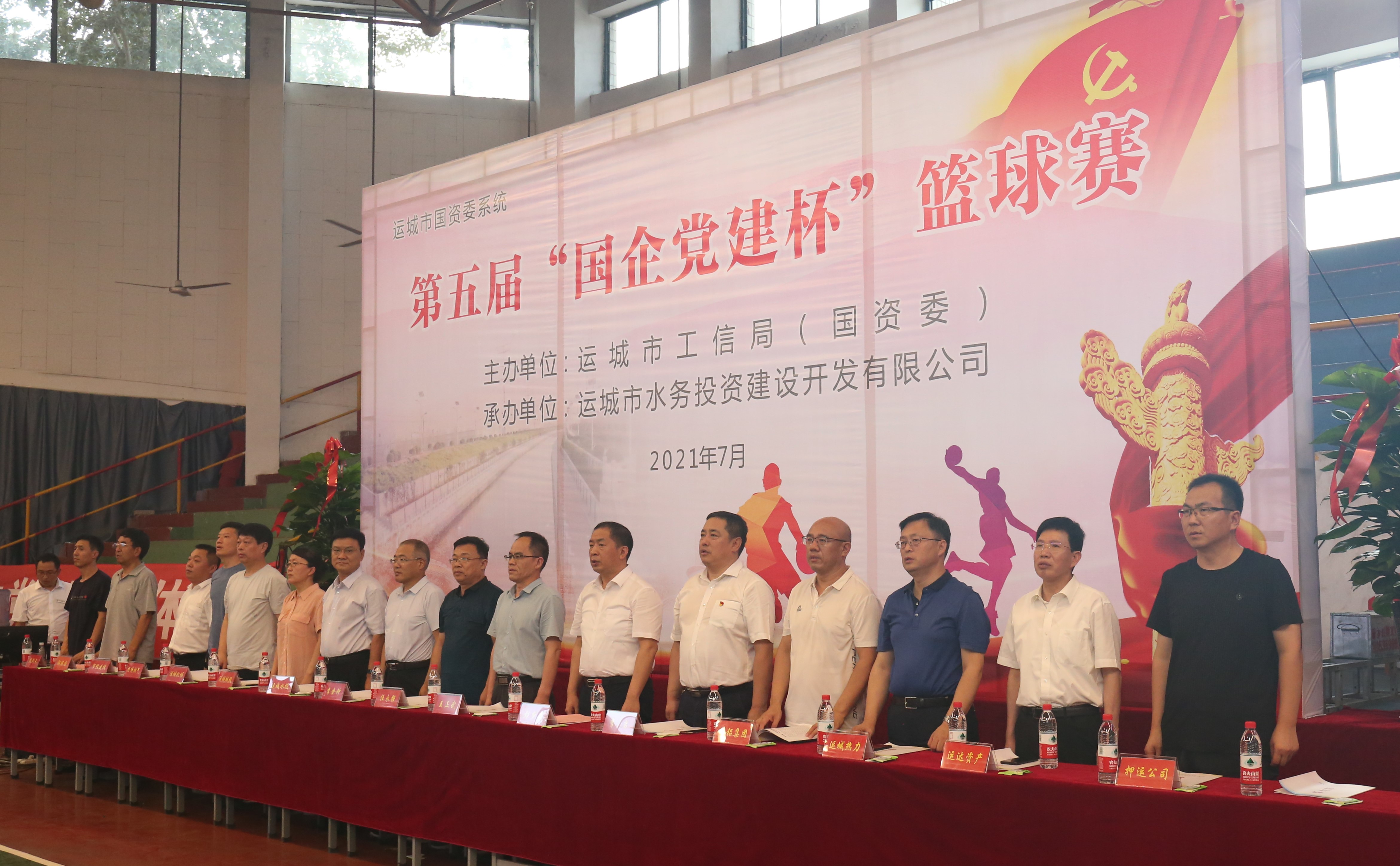 7月13日,由運(yùn)城市工信局(國(guó)資委)主辦、運(yùn)城市水務(wù)投資建設(shè)開(kāi)發(fā)有限公司承辦的運(yùn)城市國(guó)資委系統(tǒng)第五屆“國(guó)企黨建杯”籃球賽在運(yùn)康中學(xué)體育館隆重開(kāi)幕。市政府副秘書(shū)長(zhǎng)王正武、市工信局(國(guó)資委)局長(zhǎng)彭夢(mèng)森、市水投公司董事長(zhǎng)崔作銘等領(lǐng)導(dǎo)出席了本次開(kāi)幕式。