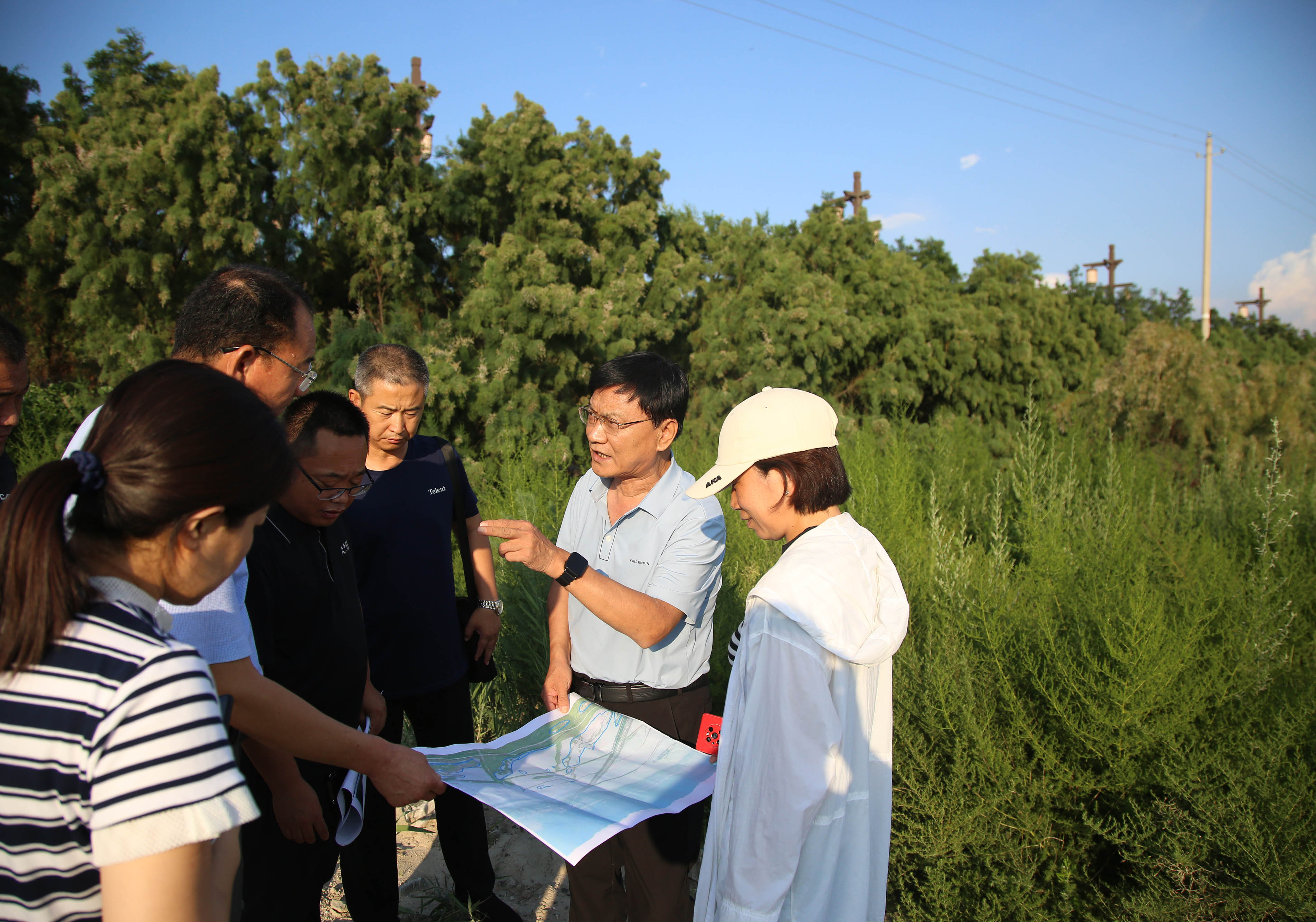 8月3日下午,為保證施工安全和工程質(zhì)量,加快施工進度,進一步優(yōu)化設(shè)計方案,公司董事長兼總經(jīng)理崔作銘帶隊赴鹽池跨湖大道以西實地踏勘,現(xiàn)場研討施工方案。市水工局、鹽池項目相關(guān)負責人陪同檢查。