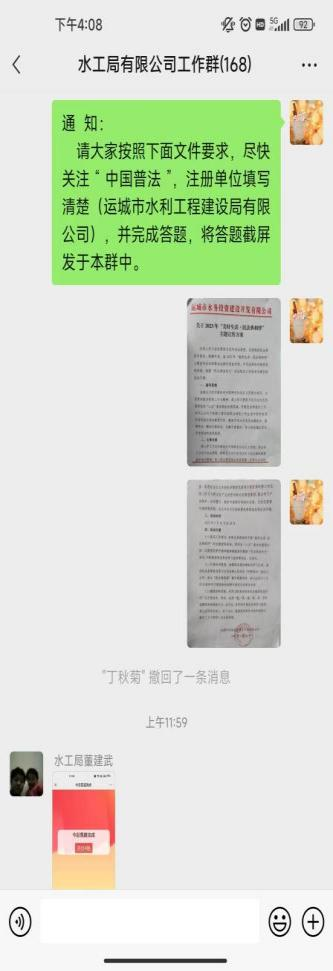為加大《民法典》宣傳,努力讓每一名干部職工走進民法典、了解民法典、運用民法典,切實增強廣大干部職工的法治意識和法治信仰,5月29日運城市水利工程建設局有限公司組織干部職工開展2023年“美好生活•民法典相伴”主題活動?;顒蝇F(xiàn)場傳達了運城市水務投資建設開發(fā)有限公司《關于2023年“美好生活•民法典相伴”主題宣傳方案》,并向大家介紹了民法典的重要意義?;顒又懈刹柯毠しe極關注“中國普法”,注冊賬號并進行了答題。此次活動激發(fā)干部職工主動學習法律知識,增強了用法治思維和法治方式解決問題的能力。