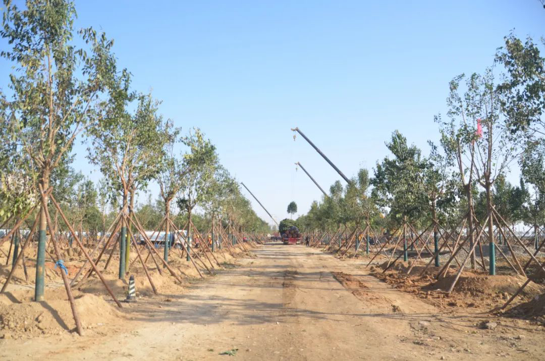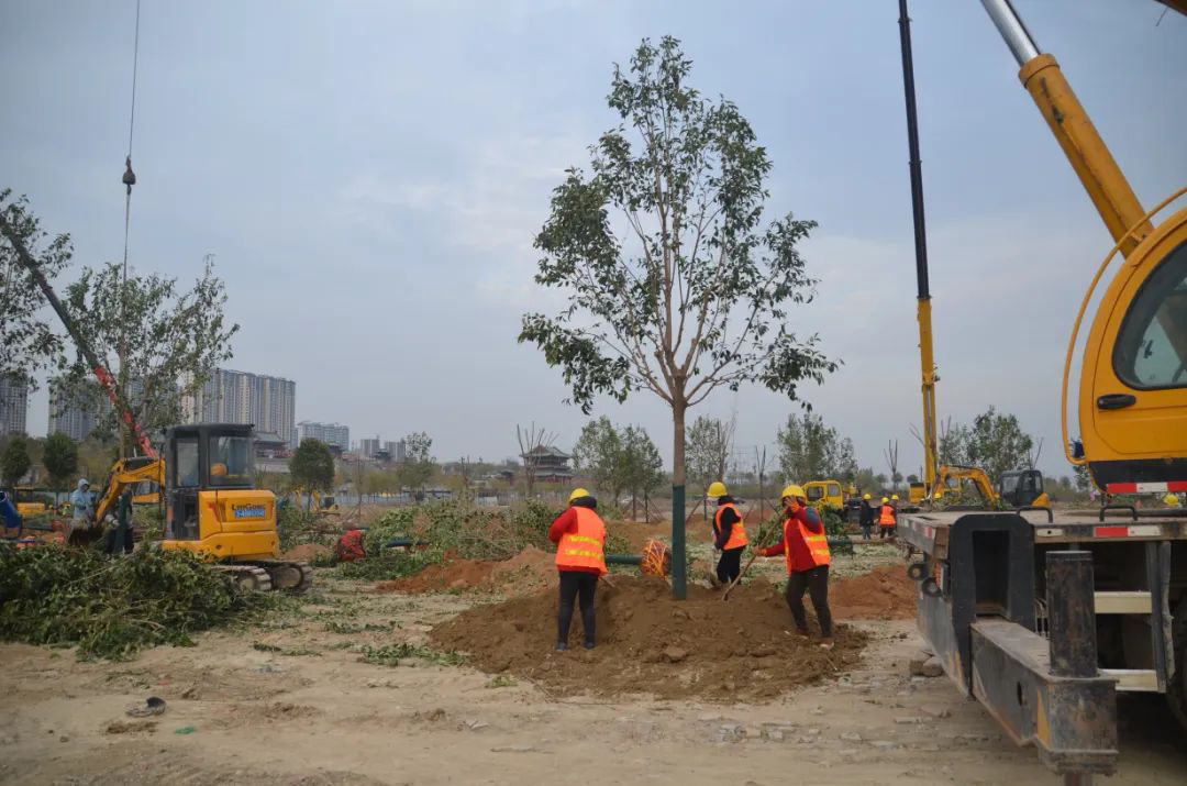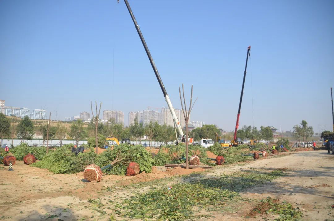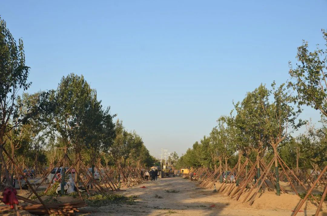 施工現(xiàn)場,大型機械集中作業(yè),挖掘機、裝載機、吊裝機和運輸車來回穿梭,九十余名工人辛勤勞作,相互配合,干勁十足,按設(shè)計規(guī)定放線挖坑、吊裝樹木、培土壓實,防護林建設(shè)有序進行。栽植過程中,多次討論研究,結(jié)合鹽池生態(tài)環(huán)境,統(tǒng)籌考慮,因地制宜選擇當(dāng)?shù)卦灾矘浞N,目前已種植國槐、榆樹、大葉女貞、紅葉石楠、大葉黃楊、金森女貞、麥冬等各類喬灌木草種共計700余株,綠化種植面積2萬多平米,綠化建設(shè)將進一步對鹽湖北側(cè)岸帶生態(tài)系統(tǒng)起到很好的防護作用。