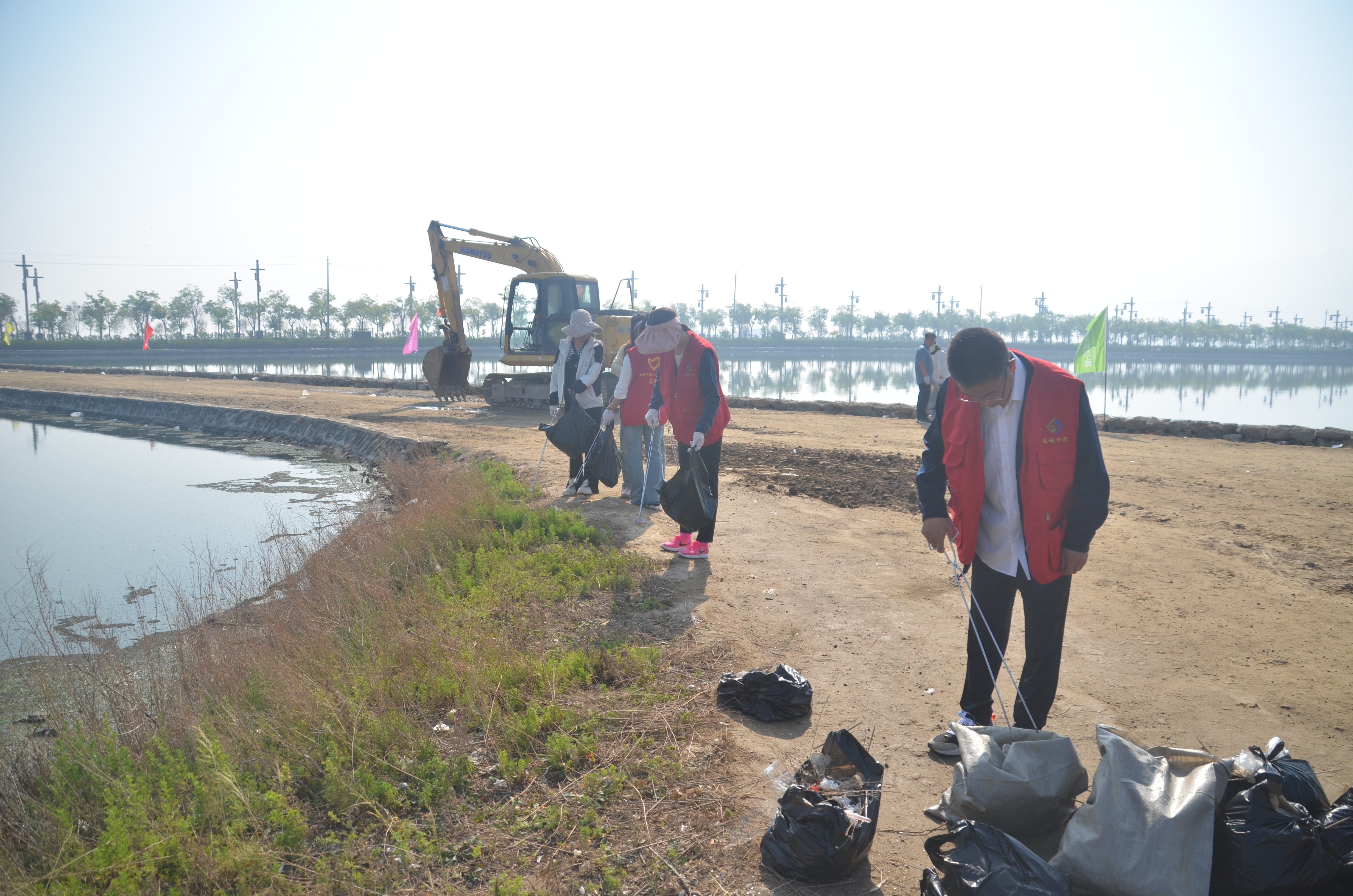 本次活動(dòng),我公司對(duì)成語典故園及鹽湖22號(hào)堤埝周邊水面、濕地、道路、護(hù)坡、邊坡等區(qū)域的垃圾、水面漂浮物進(jìn)行集中整治清理。
