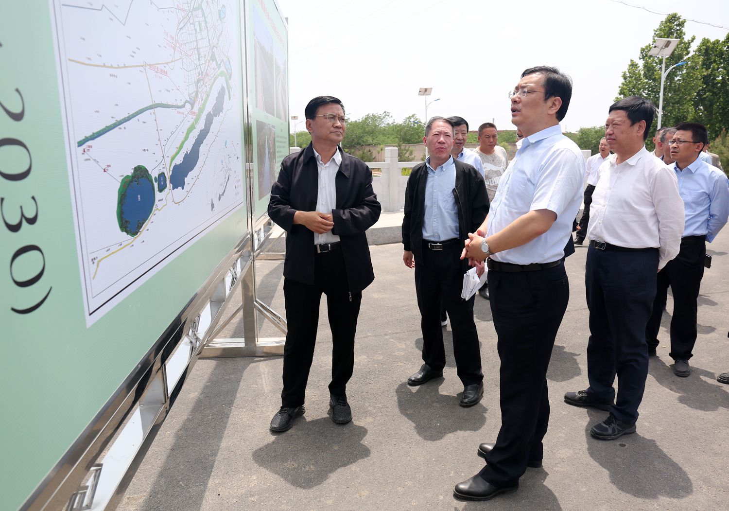 5月5日上午,市委書(shū)記丁小強(qiáng)在市委常委、市委秘書(shū)長(zhǎng)喬登州、鹽湖區(qū)區(qū)委書(shū)記李哲、區(qū)長(zhǎng)薛永琦、市水務(wù)局局長(zhǎng)靳虎剛等領(lǐng)導(dǎo)的陪同下,蒞臨姚暹渠空港段、禹都段調(diào)研,現(xiàn)場(chǎng)聽(tīng)取了我公司董事長(zhǎng)崔作銘關(guān)于項(xiàng)目進(jìn)展情況的匯報(bào)。