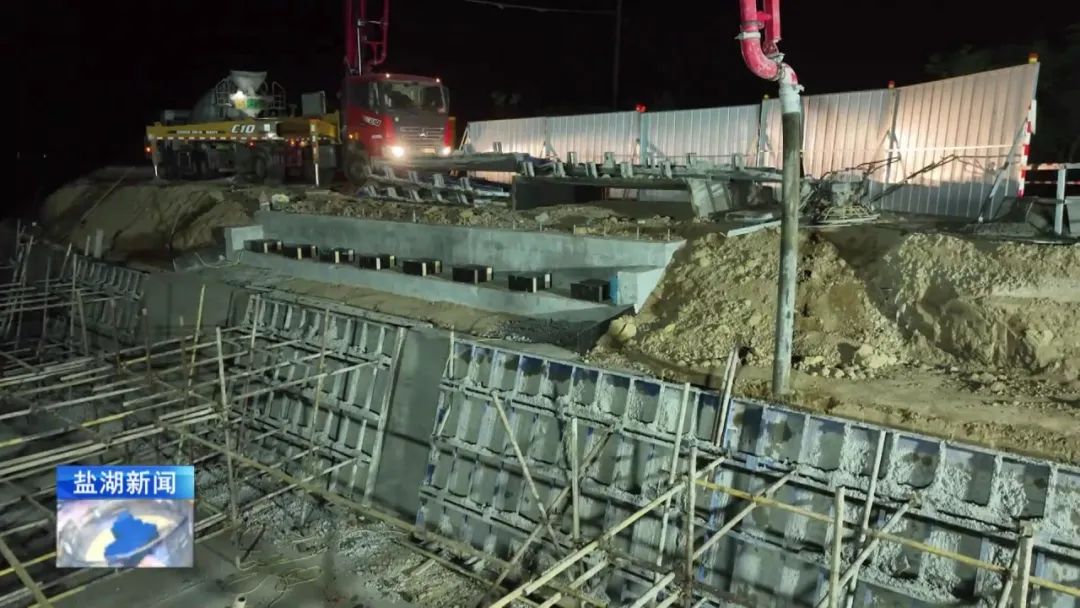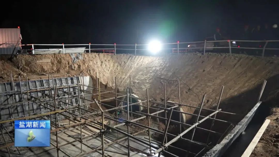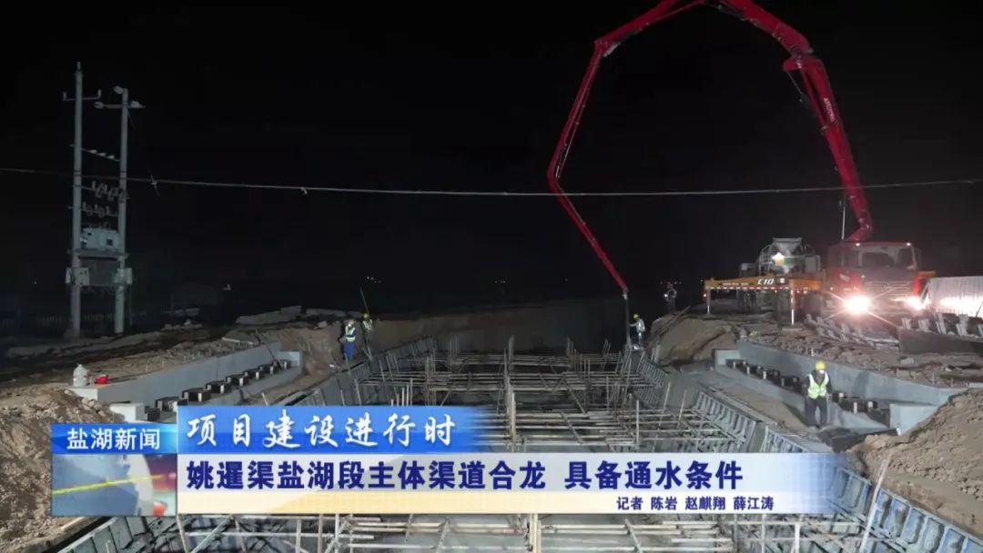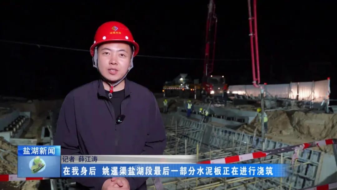 現(xiàn)在是4月28日晚上11時30分,在我身后,姚暹渠鹽湖段最后一部分水泥板正在進(jìn)行澆筑。澆筑完成后,全長24.9公里的姚暹渠鹽湖段主體渠道將實現(xiàn)合龍,形成完整的過水通道,標(biāo)志著工程迎來關(guān)鍵的階段性勝利。