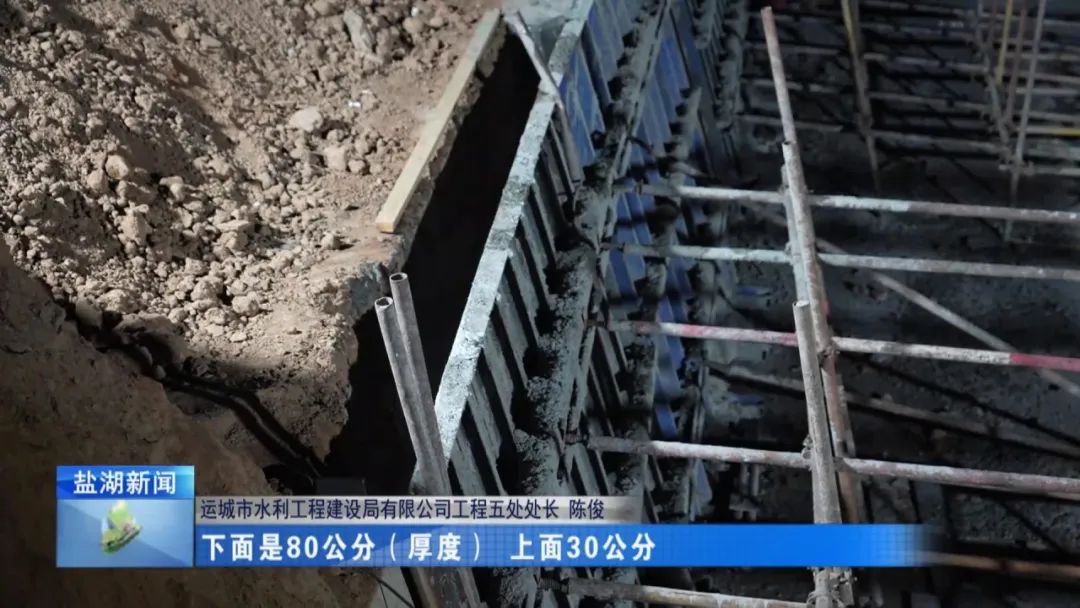 目前進(jìn)行的是仰斜式擋墻的澆筑,澆筑一共分五步,因為它垂直高度2.5米,不能一次澆筑完,澆筑一次,休息一會,達(dá)到初凝,再澆第二次,咱們目前在的地方已經(jīng)澆筑四次了,再差一層就澆筑完了,這個完成了以后,咱們農(nóng)村段24公里就全線貫通。